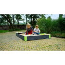 Hvilket materiale er sæderne i sandkassen lavet af?