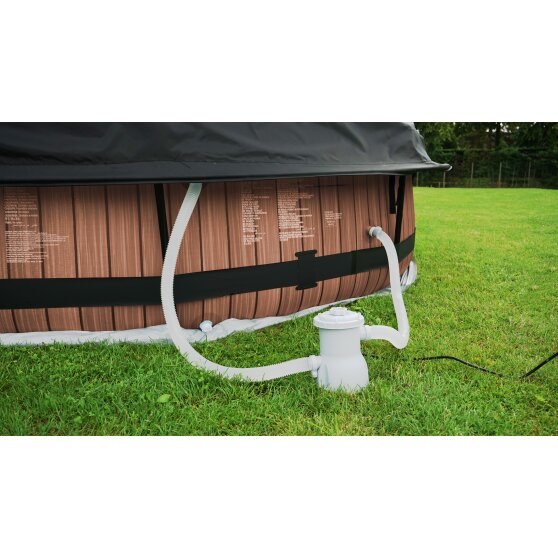 Find ud af, hvor robust en rund pool over jorden kan være: Det pulverlakerede stålstel og de robuste ben på EXIT Black Wood poolen sikrer, at poolen altid forbliver stabil og holder i årevis. Den medfølgende pumpe frisker vandet op, og holder det i bevægelse for at forhindre, at det bliver forurenet. EXIT Black Wood poolen er altid klar til en svømmetur!