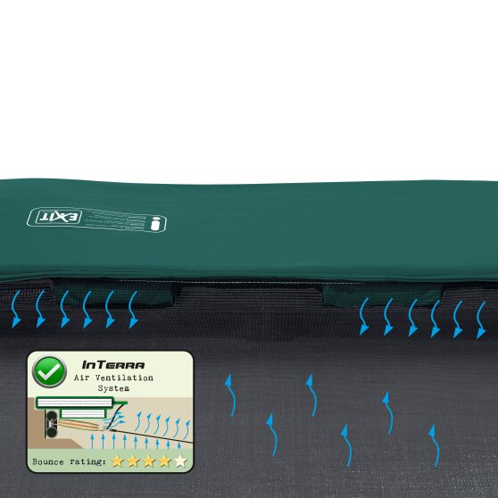 The double-conical springs in this trampoline are 17,7 cm long, guaranteeing high bounces and soft landings. The unique de-aeration system of the jump mat and the padding ensures an open structure so that air can easily escape while jumping. In addition, the EXIT Toys InTerra ground-level trampoline has a strong padding, which is 35 cm wide and 2 cm thick, including a foot protection system. This always prevents your feet from getting tangled while jumping. The trampoline frame is galvanised and afterwards powder coated, so no chance of rusting. All in all, the InTerra trampoline of EXIT Toys is a long-term investment in outdoor play equipment!