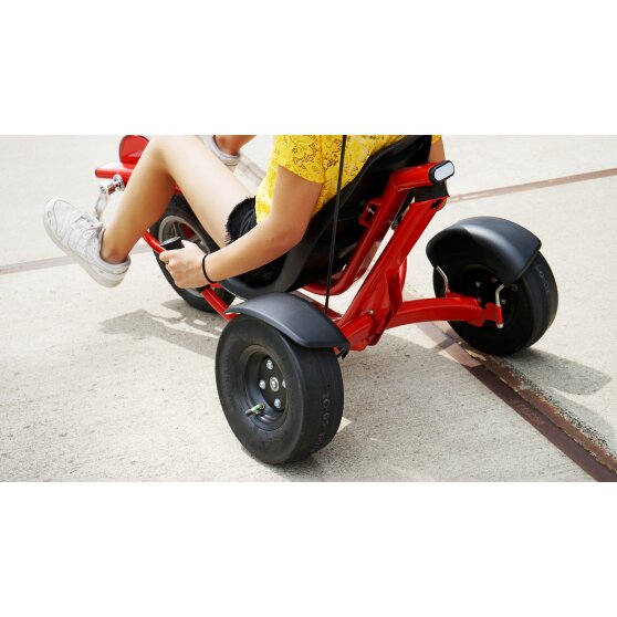 EXIT Pro 50 triker er en superhurtig og manøvrerbar street racer til store og små. Du kommer nemt rundt i svingene med dette røde racermonster. Det innovative styresystem og den lave siddeposition gør det muligt at styre let gennem svingene samtidig med, at man altid har perfekt kontrol over vognen. De brede pneumatiske højkvalitetsdæk på trikerne giver et fremragende vejgreb.