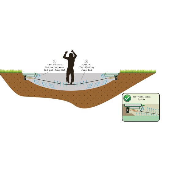 The EXIT Supreme trampoline is a rectangular trampoline of absolute top quality with green padding. To construct the EXIT Supreme, you dig a big pit in the ground so that the trampoline stands completely on ground level for a lovely and safe result. With the Supreme trampoline parents don’t have t worry about their children accidentally fall from a high trampoline.