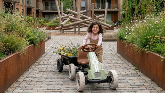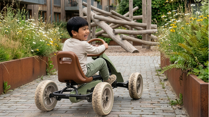 En gokart med pedaler er også legetøj, som børn hele tiden finder på noget nyt med. Det ene øjeblik racer de en runde gennem haven, det næste øjeblik leverer de legetøj eller følger en hjemmelavet bane. Netop den variation gør en første gokart med pedaler så sjov. EXIT Foxy passer godt til det og giver små børn plads til at lege og gå på opdagelse på egen hånd.