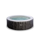 EXIT Wood Deluxe spa ø204x65cm er et oppusteligt boblebad, der giver dig en ægte wellness-følelse hjemme i din egen baghave. Den mørkegrå spa leveres med en filterpumpe, som også kan bruges til opvarmning, et bunddæksel og et isolerende overtræk. Spabadet er rummeligt nok til fire personer. Slap helt af i det varme vand, og nyd boblerne sammen. Det er let at komme op i spaen, hvilket gør, at den er velegnet og sjov at bruge sammen med børnene. EXIT Wood Deluxe spa forvandler enhver have til et vandparadis!