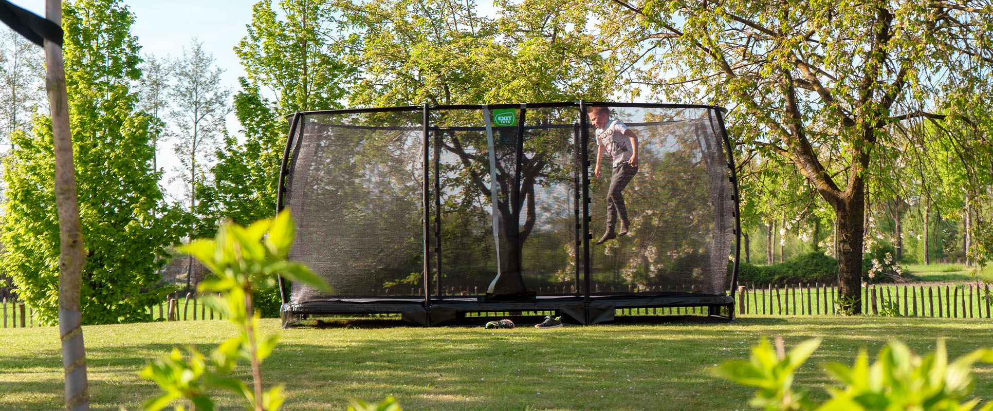 EXIT trampoliner fås i mange forskellige størrelser, og vi tilbyder dig altid valget mellem en rund og en rektangulær trampolin. Som prikken over i'et finder du i vores webshop både nedgravede trampoliner og trampoliner på ben. Takket være vores brede produktsortiment har vi en trampolin til enhver have – også din!